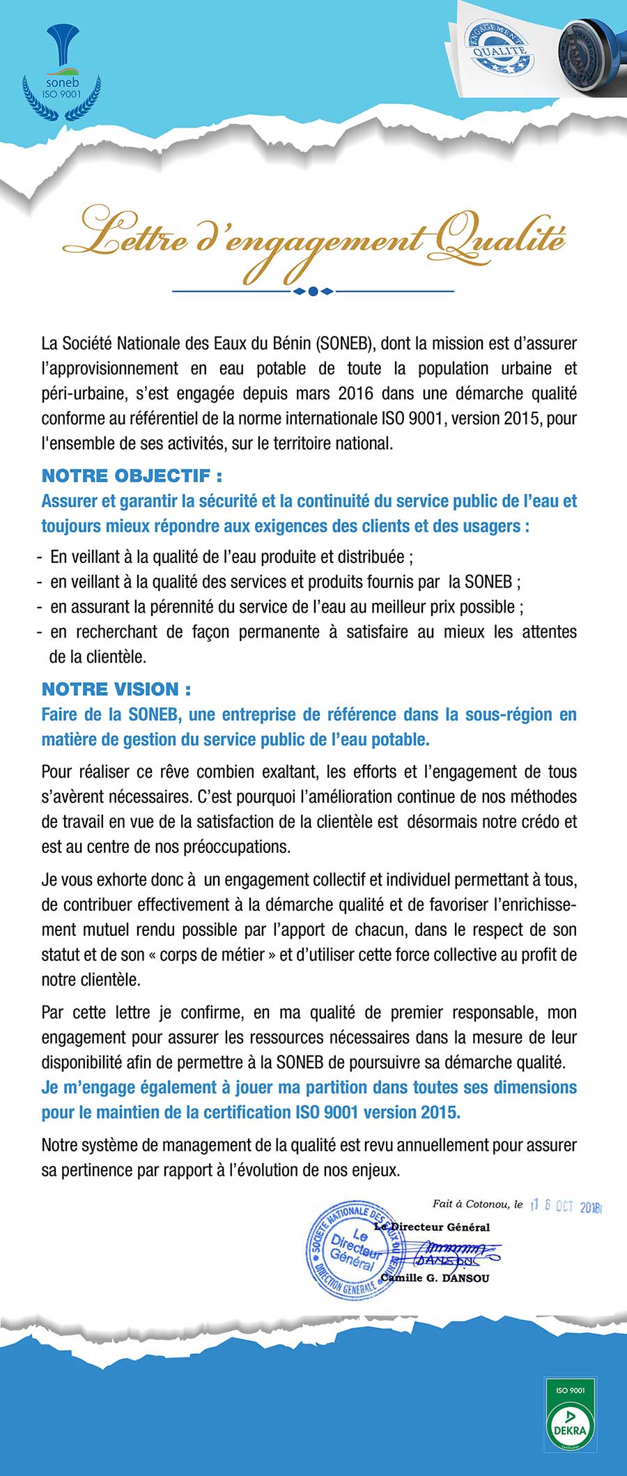 Lettre d'engagement qualité