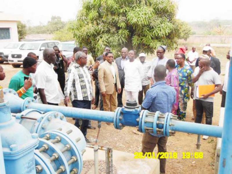 Le Ministre de l'Eau et des Mines (MEM), monsieur Samou Seidou ADAMBI, accompagné du Directeur Général de la SONEB Lucien AVOHOUEME, a effectué durant 96heures, du 25 au 28janvier 2018, une tournée d’inspection des chantiers d’eau potable en cours de réalisation dans les départements de l'Atlantique, des Collines, du Borgou et du Zou.